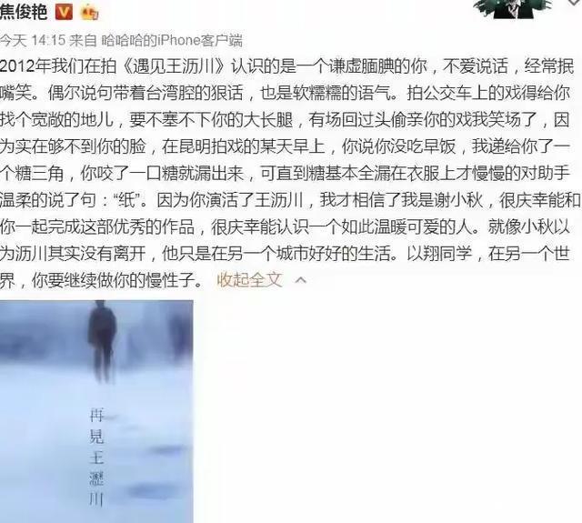 当初,高以翔走了,焦俊艳是那么撕心裂肺,回忆了两人拍戏的过往。 对高以翔的人品与性格进行了高度赞扬,星河徜徉,一路有光! 这是焦俊艳对好友的最后告别。